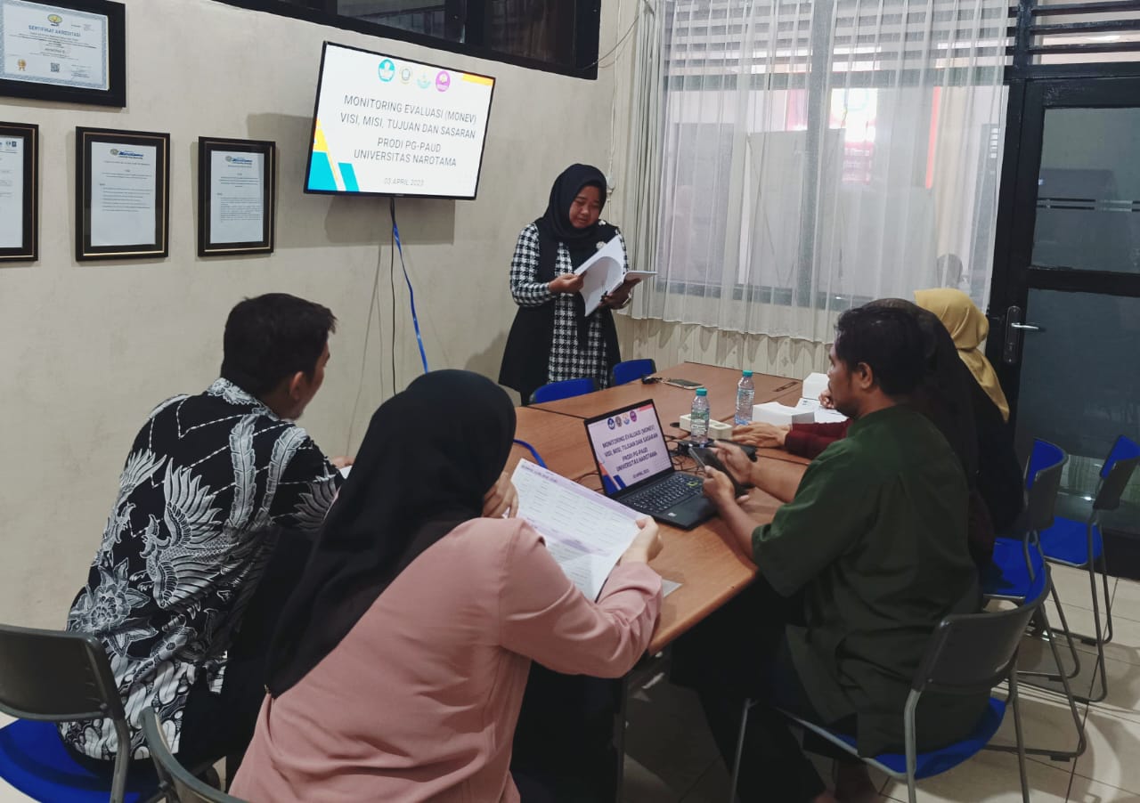 Surabaya, 3 April 2023 — Fakultas Keguruan dan Ilmu Pendidikan (FKIP) Universitas Narotama melaksanakan kegiatan Monitoring dan Evaluasi (Monev) terhadap Visi, Misi, Tujuan, dan Sasaran (VMTS) fakultas sebagai upaya menjaga keselarasan arah pengembangan dan peningkatan mutu akademik.